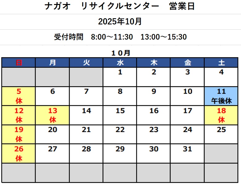 営業日:月曜から土曜まで(日曜日、祝日は休業及び指定カレンダーによる。)